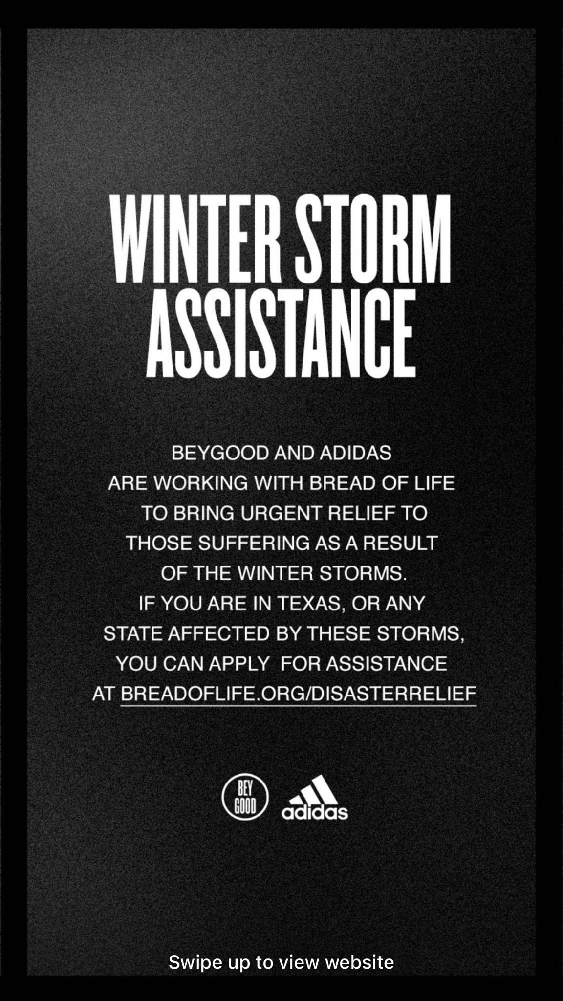Beyoncé’s non-profit Beygood and Adidas are working with Bread Of Life to bring urgent relief to those suffering as a result of the winter storms.