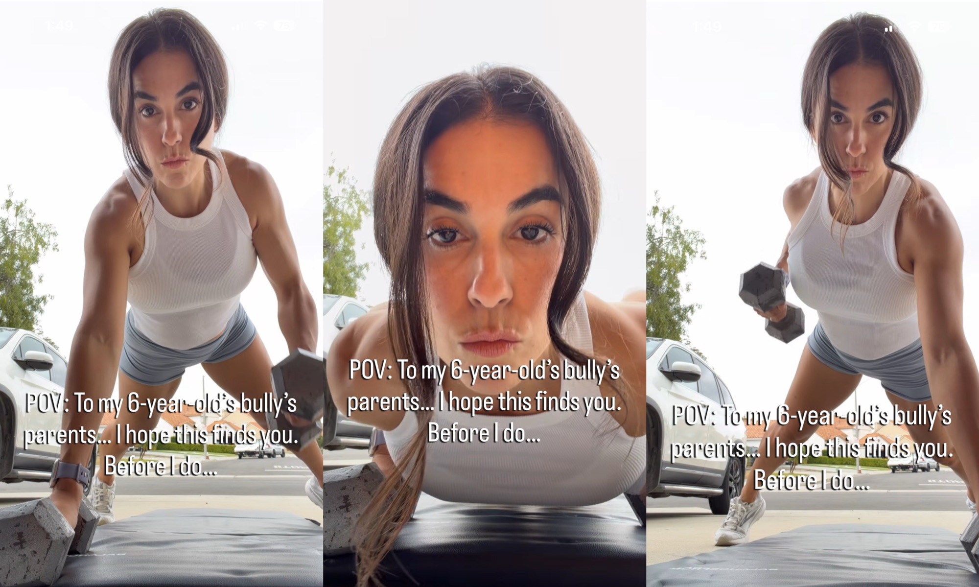 While trying to threaten the bully of her 6-year-old son via social media, a mother in California has herself become an object of ridicule on the internet. On Instagram Reel posted on her account (@denise.dominguez_), the woman wearing workout clothing threatens through a video in which text overlays say, “POV: To my 6-year-old’s bully’s parents. I hope this finds you. Before I do…” She threatens, grimacing at the camera outdoors, standing beside a car.