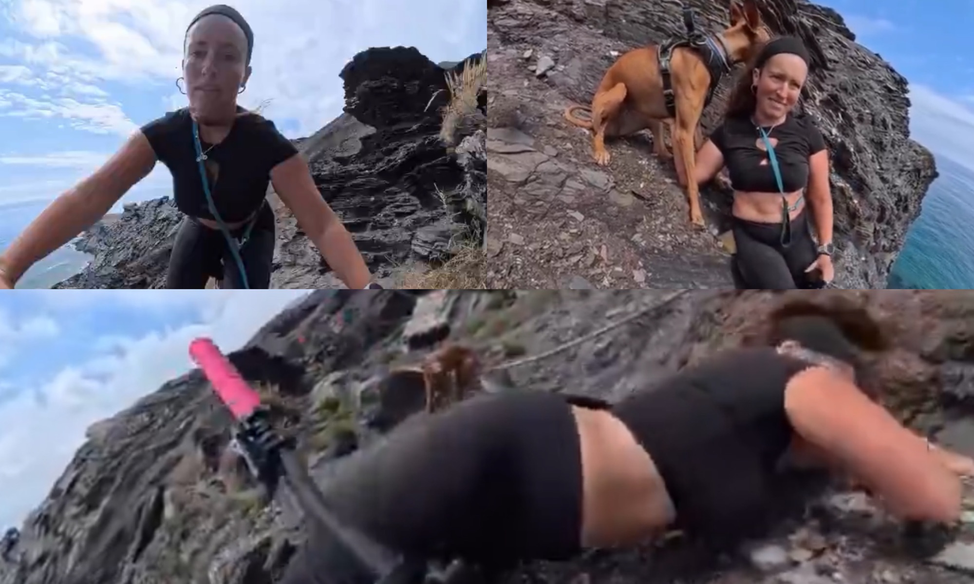 In the video that Sopeña herself posted, moments before her accident, she greets her dog. A few moments later, she loses her balance and starts sliding along the loose terrain.